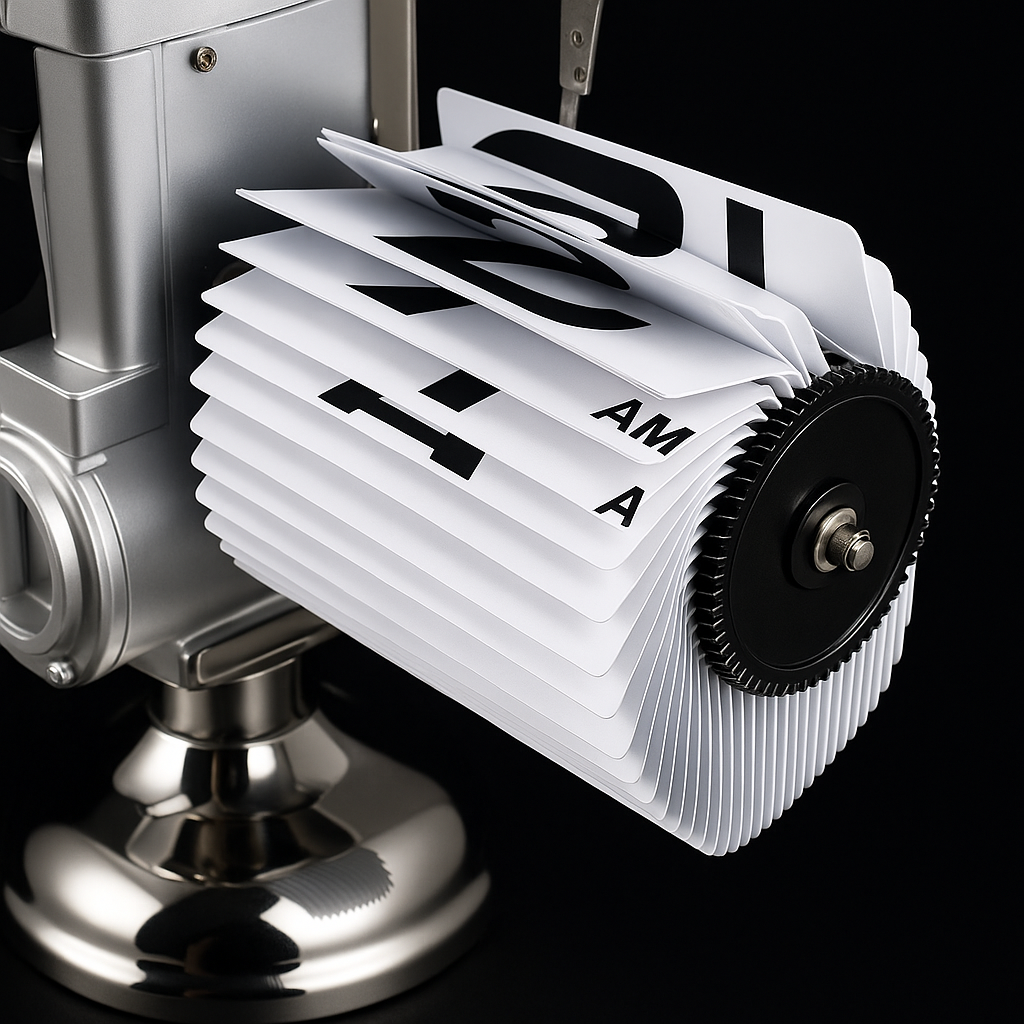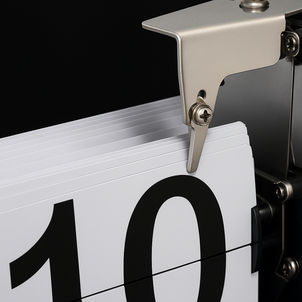 - Design: Premium flipping mechanism, reminiscent of a retro digital clock, but with words instead of numbers. A true conversation piece that can be mounted to the wall or sit on table top.